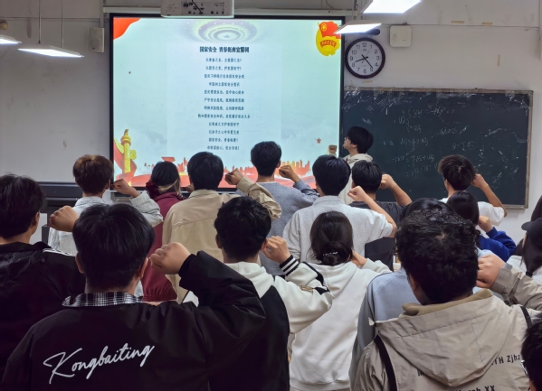 活动中,各团支部以领学、观影、交流、宣誓为主要形式,扎实推进国家安全教育入脑入心。各班团支书围绕总体国家安全观核心要义、“十五五”时期国家安全形势、统筹发展和安全重大原则进行专题领学,帮助同学们深刻理解国家安全与个人、社会、国家的紧密联系。